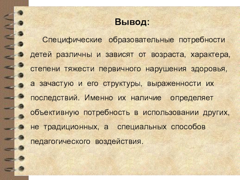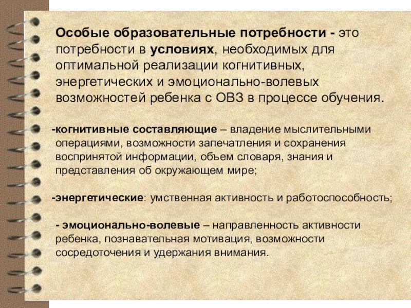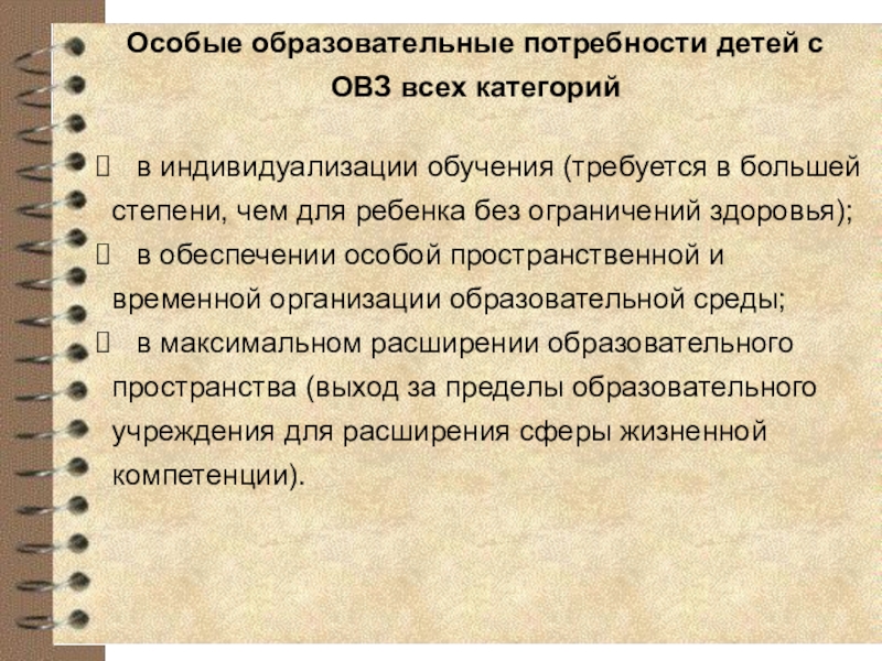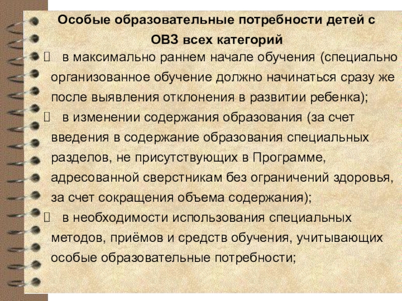 Особые образовательные потребности детей с ОВЗ всех категорий