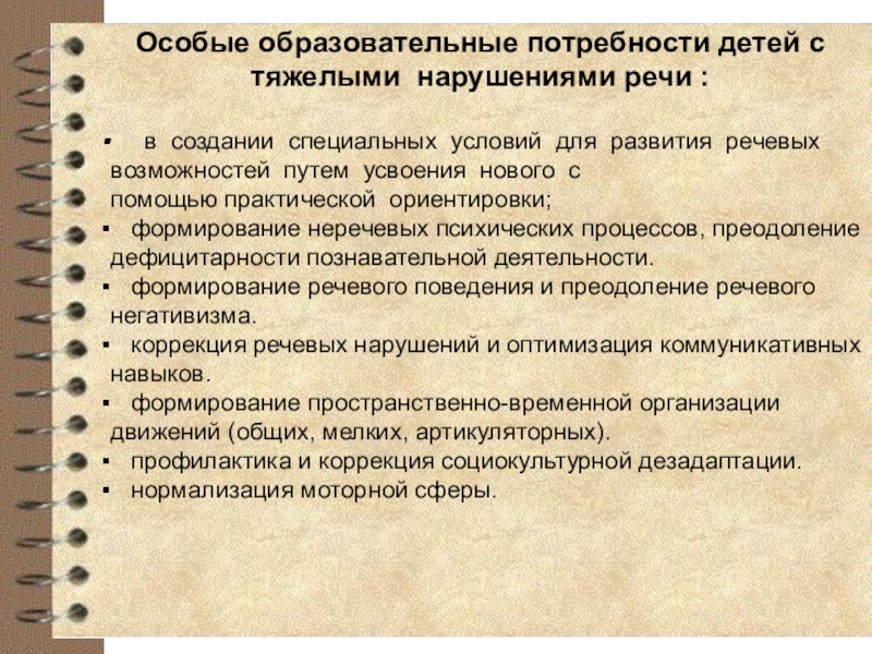 Особые образовательные потребности детей с тяжелыми нарушениями речи :
