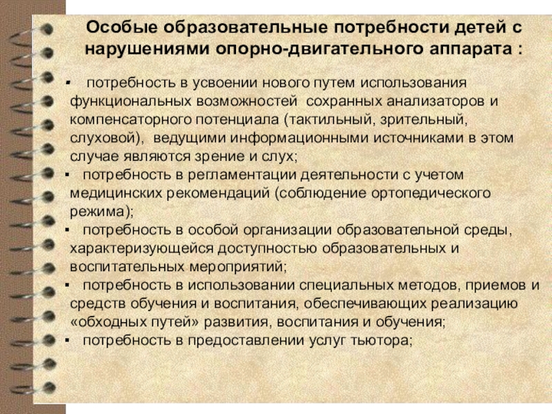 Особые образовательные потребности детей с нарушениями опорно-двигательного аппарата :