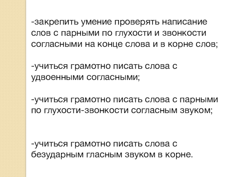-учиться грамотно писать слова с парными по глухости-звонкости согласным звуком;