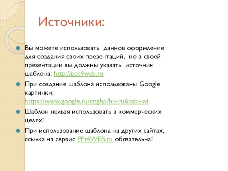 Источники:Вы можете использовать данное оформление для создания своих презентаций, но в своей презентации вы должны указать источник