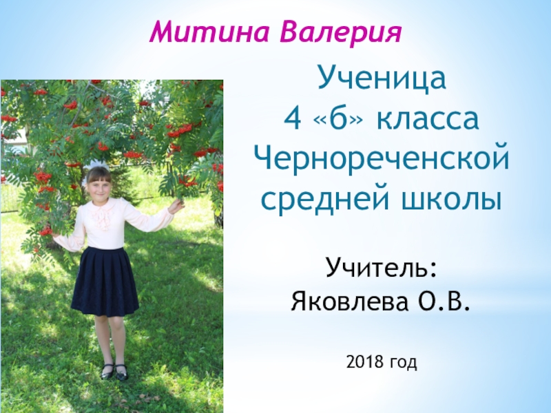 Митина ВалерияУченица 4 «б» классаЧернореченской средней школыУчитель:Яковлева О.В.2018 год