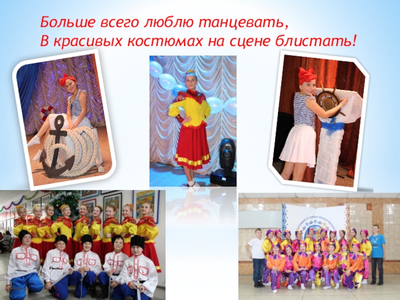Больше всего люблю танцевать,В красивых костюмах на сцене блистать!