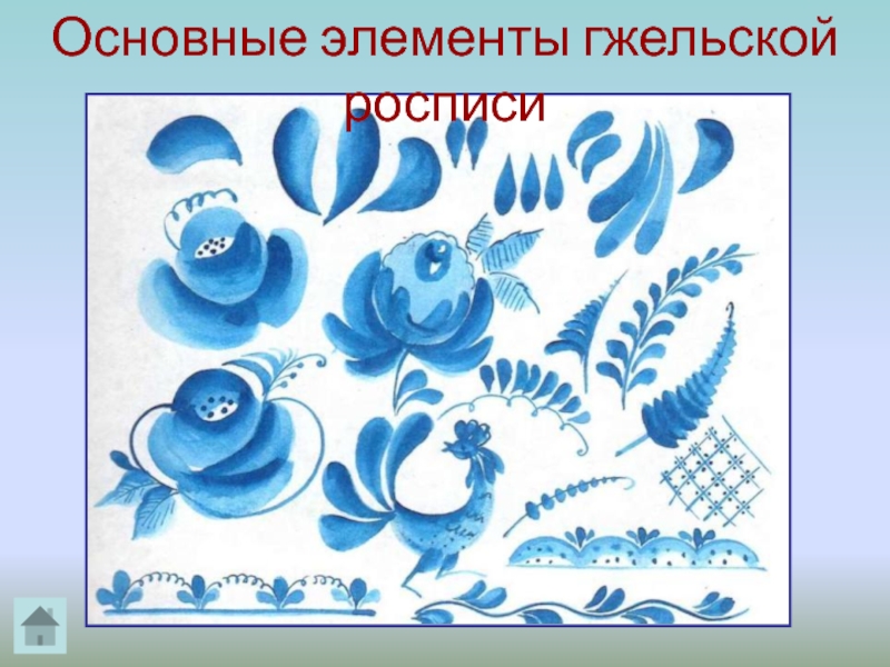 Слайд 42Основные элементы гжельской росписи
