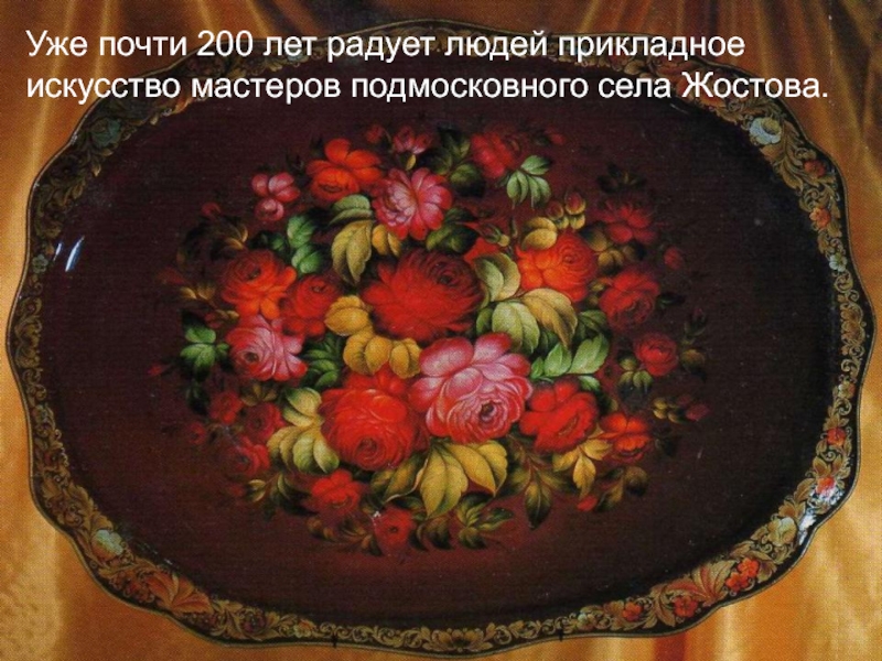 Слайд 43ЖОСТОВСКАЯ РОСПИСЬ - русский художественный промысел лаковой росписи по металлу, сложившийся