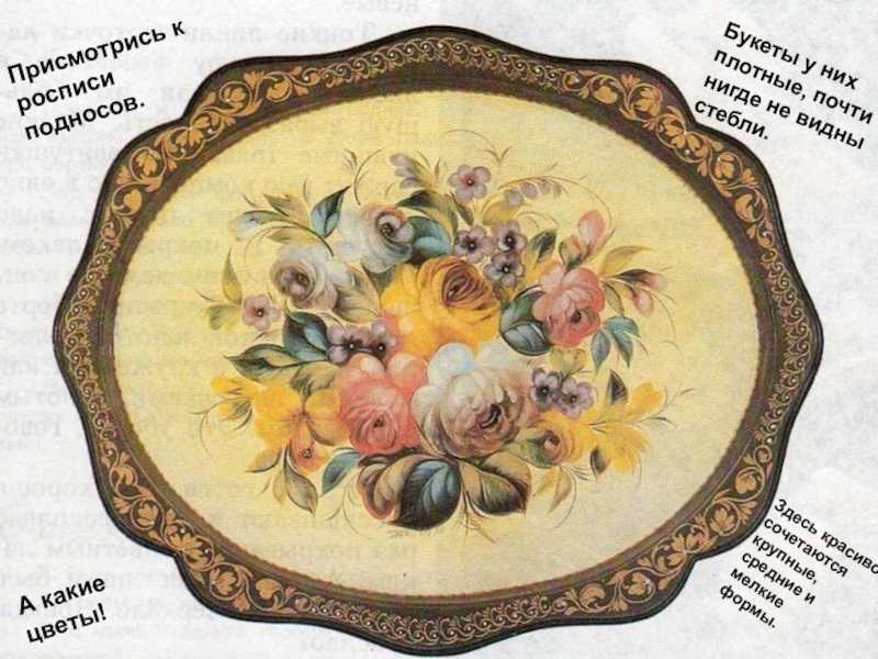 Слайд 48Присмотрись к росписи подносов.