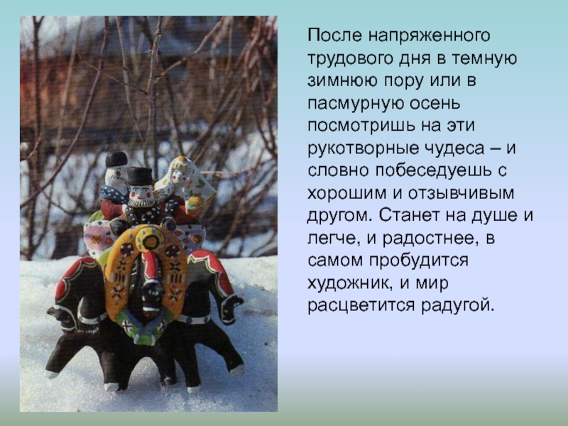 Слайд 28После напряженного трудового дня в темную зимнюю пору или в пасмурную