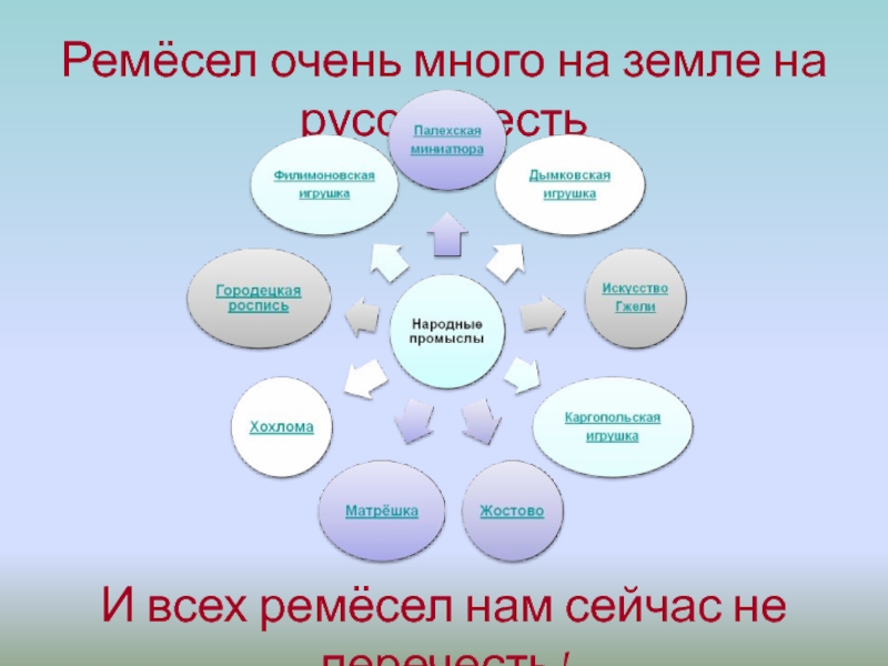 Слайд 3Ремёсел очень много на земле на русской есть