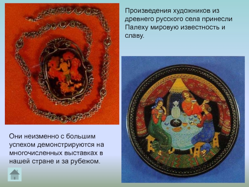 Слайд 35Произведения художников из древнего русского села принесли Палеху мировую известность и