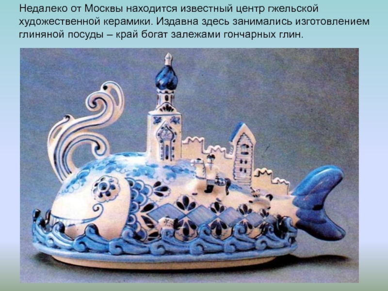Слайд 37Недалеко от Москвы находится известный центр гжельской художественной керамики. Издавна здесь