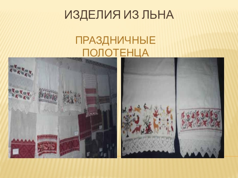 Слайд 15Изделия из льняного полотна