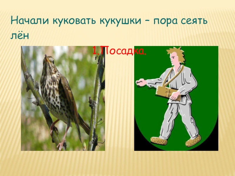 Слайд 4Начали куковать кукушки – пора сеять лён