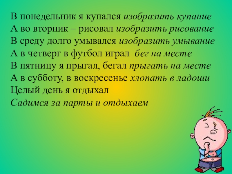 В понедельник я купался изобразить купание