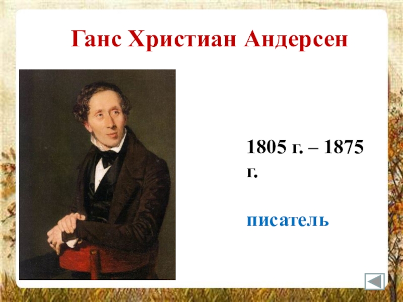 Ганс Христиан Андерсен1805 г. – 1875 г.писатель