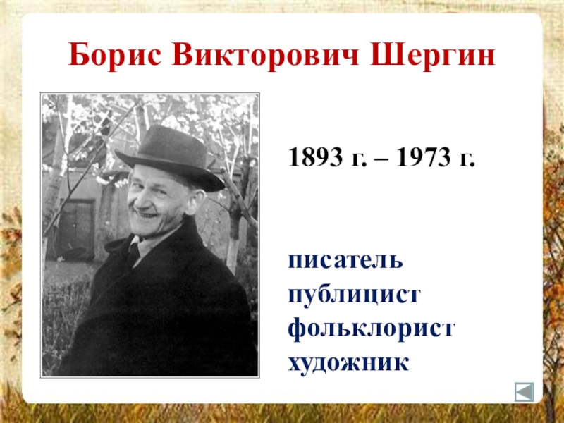 Борис Викторович Шергин1893 г. – 1973 г.писательпублицистфольклористхудожник