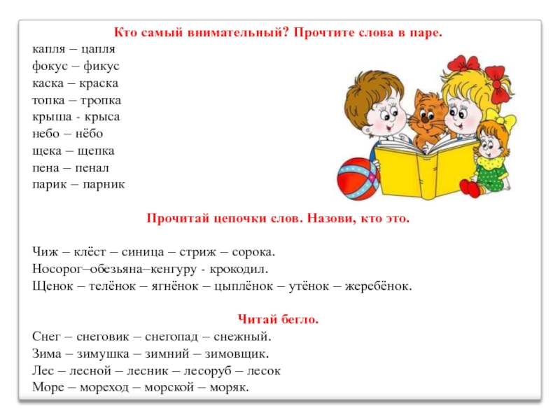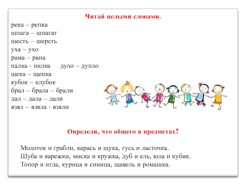 Шуба и варежки, миска и кружка, дуб и ель, юла и кубик.