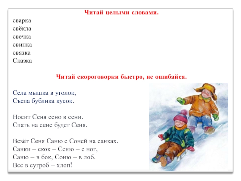 Жо–жо–жо–лужок, творожок, снежок,_________ .