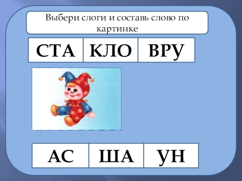 СТАКЛОВРУАСШАУНВыбери слоги и составь слово по картинке