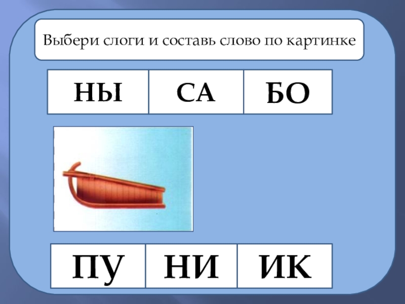 НЫСАПУНИБОИКВыбери слоги и составь слово по картинке