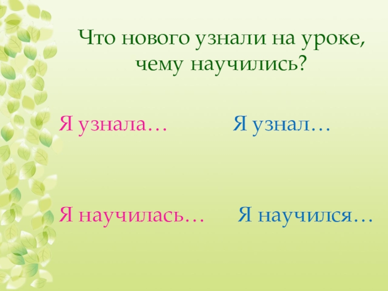 Что нового узнали на уроке, чему научились?Я узнала…      Я узнал…