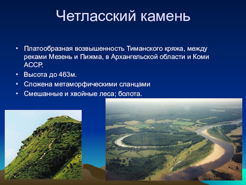 Платообразная возвышенность Тиманского кряжа, между реками Мезень и Пижма, в