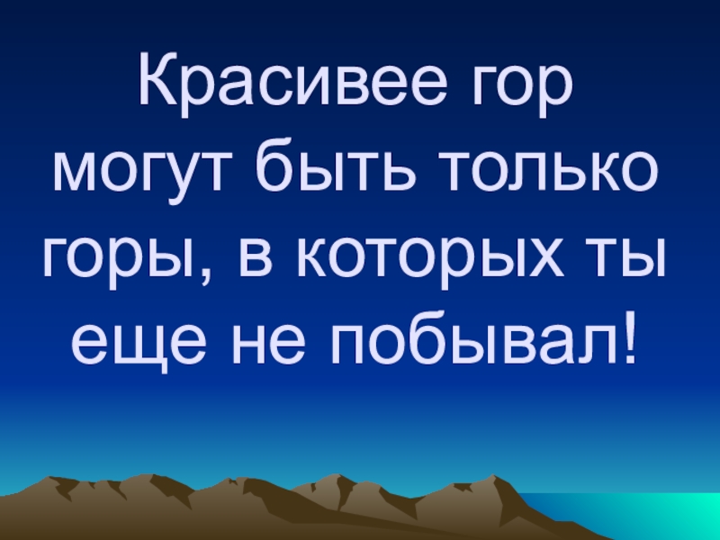 Слайд 13Красивее гор могут быть только горы, в которых ты еще не