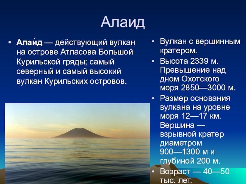 Алаи́д — действующий вулкан на острове Атласова Большой Курильской гряды; самый северный