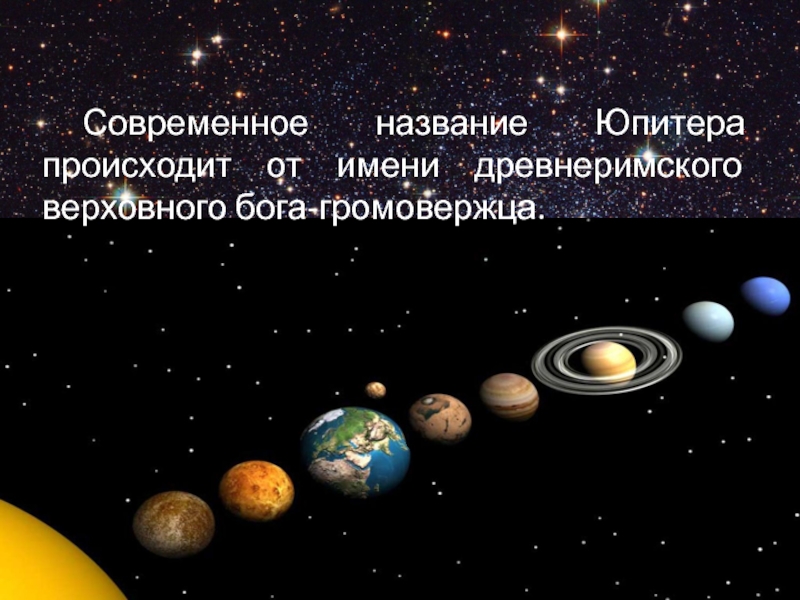 Слайд 2 Современное название Юпитера происходит от имени древнеримского верховного бога-громовержца.