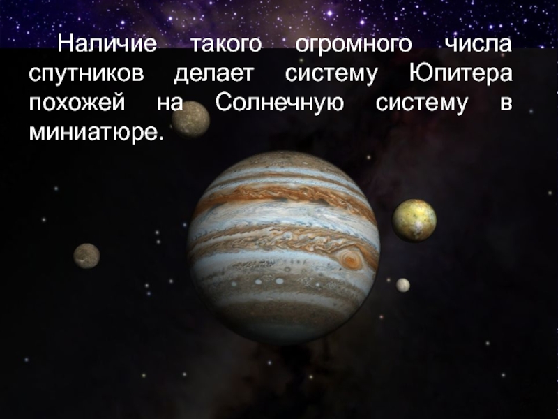 Слайд 5 Наличие такого огромного числа спутников делает систему Юпитера похожей на Солнечную