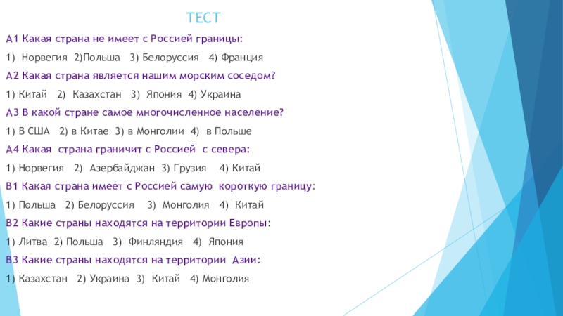 1) Польша 2) Белоруссия 3) Монголия 4) Китай