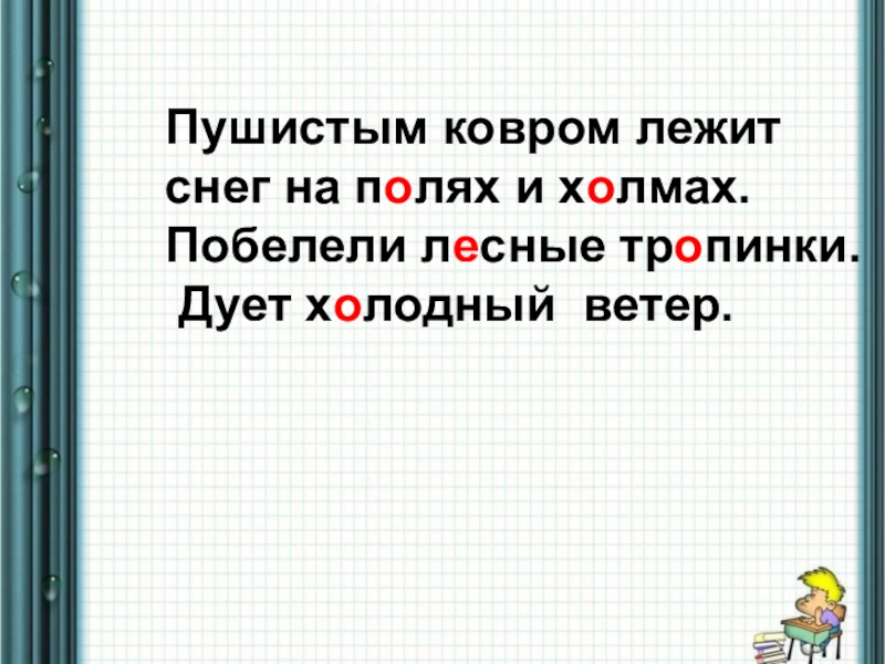Слайд 3Пушистым ковром лежит снег