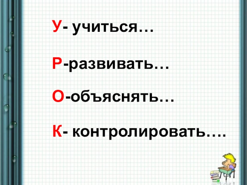 У- учиться… Р-развивать… О-объяснять… К- контролировать….