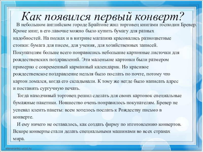 И ему ничего не оставалось, как создать фирму по изготовлению конвертов.