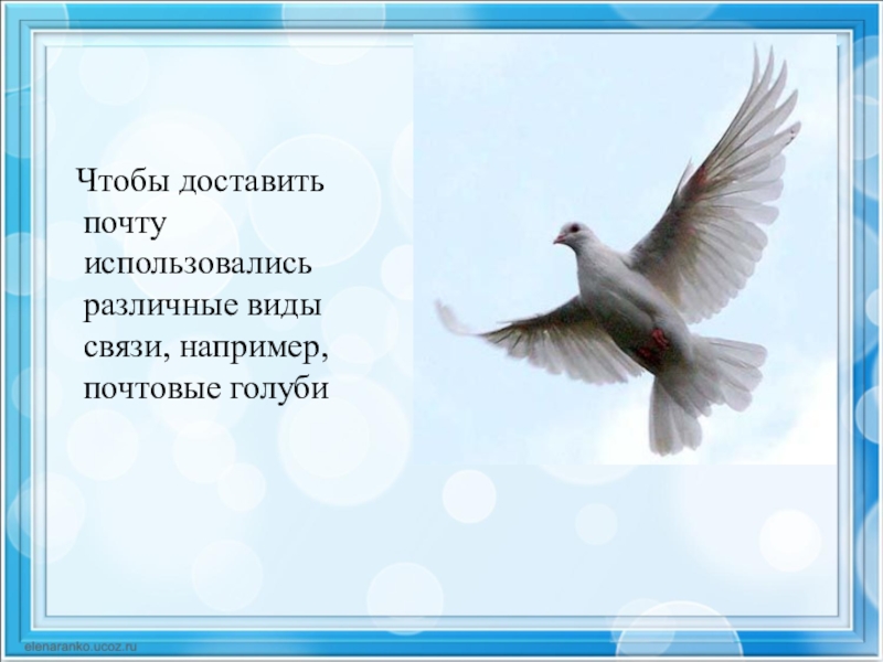 Слайд 9 Чтобы доставить почту использовались различные виды связи, например, почтовые