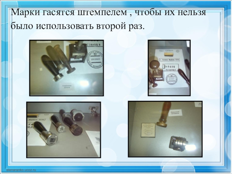 Марки гасятся штемпелем , чтобы их нельзя было использовать второй раз.