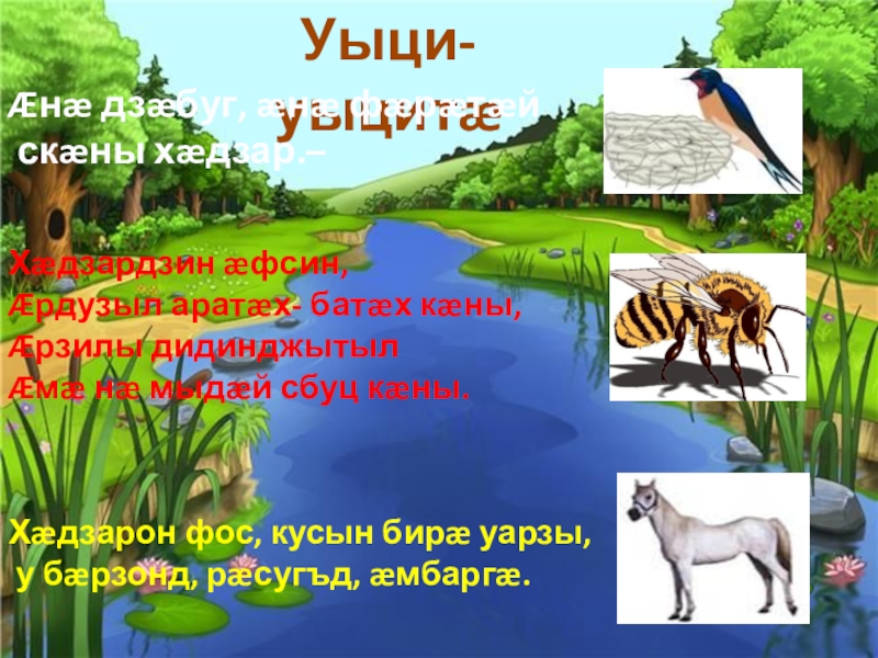 Уыци- уыцитæÆнæ дзæбуг, æнæ фæрæтæй  скæны хæдзар.–Хæдзардзин æфсин, Æрдузыл аратæх- батæх кæны, Æрзилы дидинджытылÆмæ нæ мыдæй