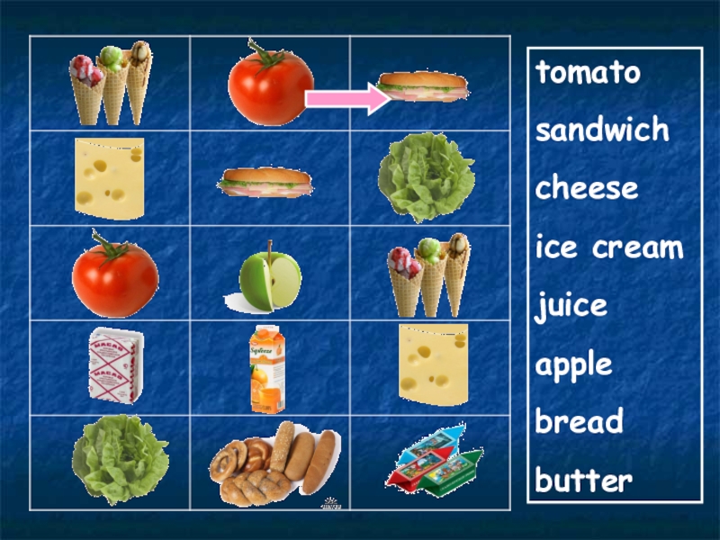tomatosandwich cheese ice creamjuiceapplebreadbutter
