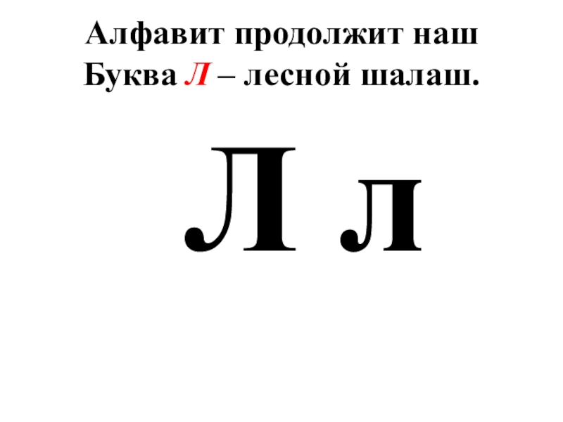 Алфавит продолжит наш Буква Л – лесной шалаш. Л л