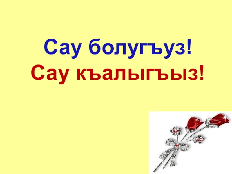 Слайд 1ХОШ КЕЛИГИЗ, БАГЪАЛЫ КЪОНАКЪЛА!