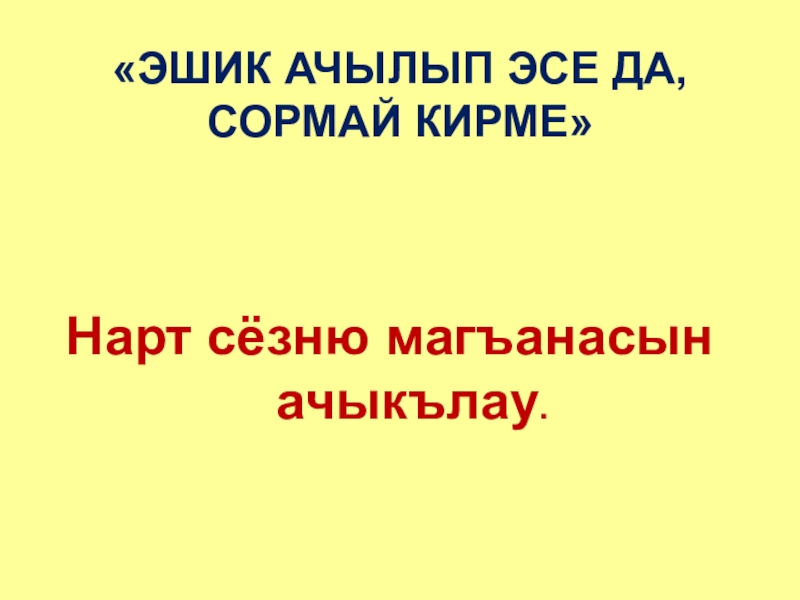 «ЭШИК АЧЫЛЫП ЭСЕ ДА, СОРМАЙ КИРМЕ» Нарт сёзню магъанасын ачыкълау.