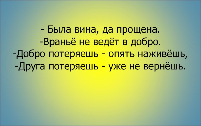 -Враньё не ведёт в добро.