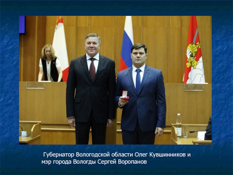 Слайд 5 Губернатор Вологодской области Олег Кувшинников и мэр города Вологды Сергей