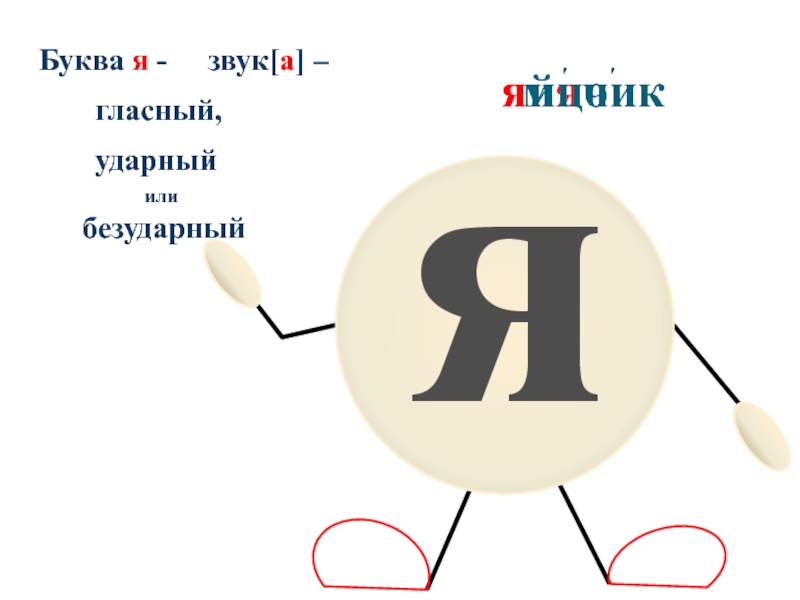 я'мячикБуква я - звук[а] – гласный, ударныйили безударныйяйцо'