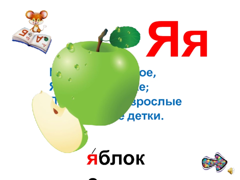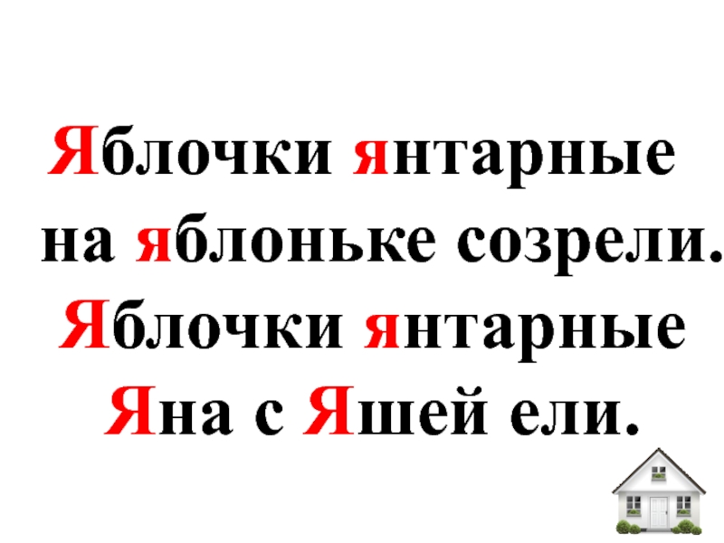 Слайд 13Яблочки янтарные на яблоньке созрели. Яблочки янтарные Яна с Яшей ели.