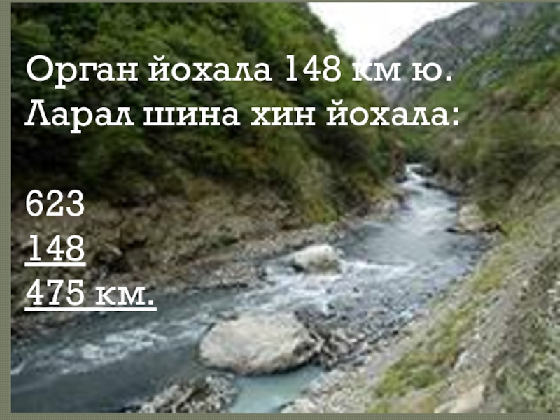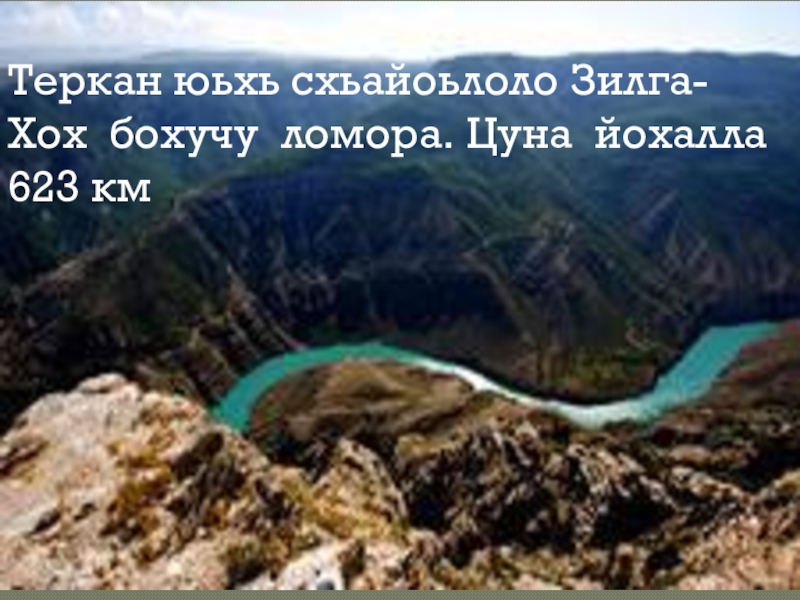 Слайд 4Теркан юьхь схьайоьлоло Зилга-Хох бохучу ломора. Цуна йохалла 623 км
