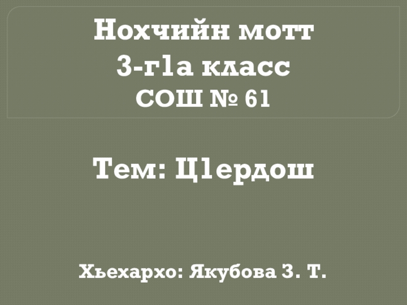Нохчийн мотт3-г1а классСОШ № 61Тем: Ц1ердошХьехархо: Якубова З. Т.