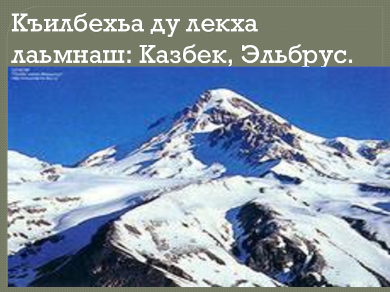 Слайд 6Къилбехьа ду лекха лаьмнаш: Казбек, Эльбрус.
