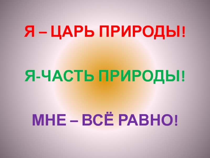 Я – ЦАРЬ ПРИРОДЫ!Я-ЧАСТЬ ПРИРОДЫ!МНЕ – ВСЁ РАВНО!