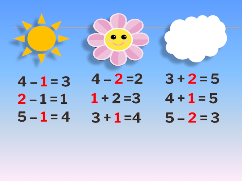 4 – 1 = 32 – 1 = 15 – 1 = 44 – 2 =21 +