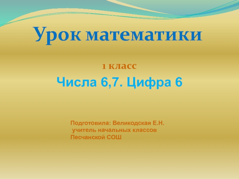 Урок математики1 классЧисла 6,7. Цифра 6Подготовила: Великодская Е.Н. учитель начальных классов Песчанской СОШ